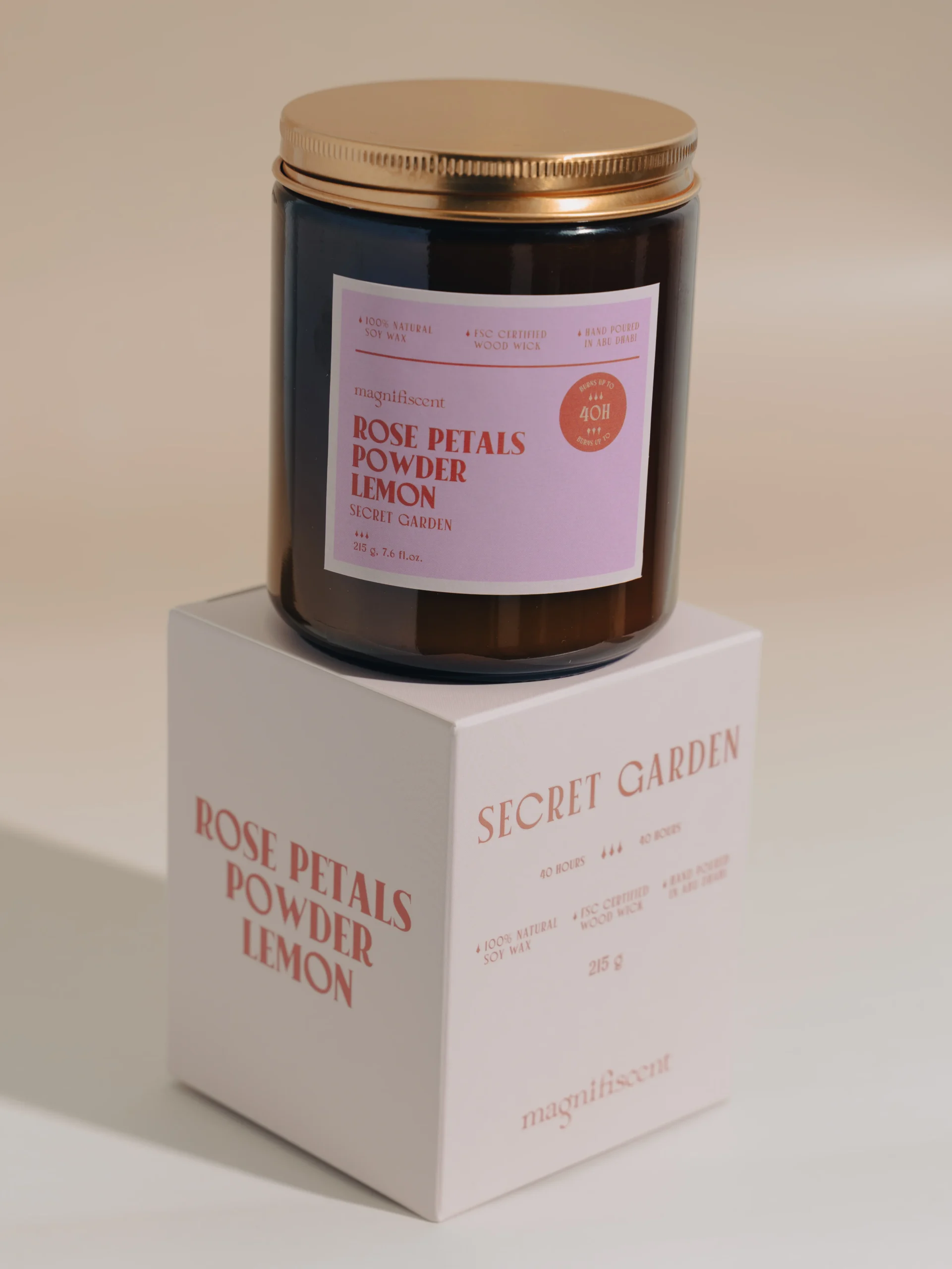 Like all Magnifiscent candles, Secret Garden is made with natural soy wax and a wooden wick to deliver a cleaner, longer-lasting burn. Our non-toxic, phthalate-free fragrance blend ensures safety and sophistication. Choose between two sizes to suit your space or occasion.
